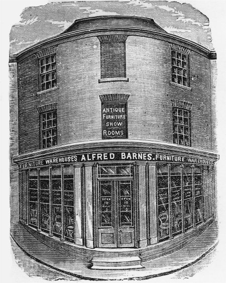 Until 1904 this building, now called the roundhouse, was Alfred Barnes’ showroom for ‘superior second-hand and antique furniture’. It was between the entrances to St John’s Hill and St John’s Street.