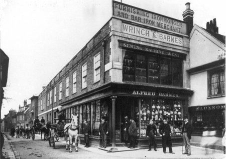 By 1871 Wrinch and Barnes had established a thriving concern on Cross Corner. They had demolished three timber framed buildings on the right hand side of the entrance to Cumberland Street and had replaced them by a two storey brick built building. The entrance was on Church Street but most of the frontage was on Cumberland Street. They described themselves as "wholesale and furnishing iron mongers, bar iron and nail steel merchants." By 1892 they had also become agents for "washing, wringing, mangling and other machinery" and had a stores and warehouses adjoining the railway station.