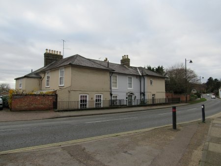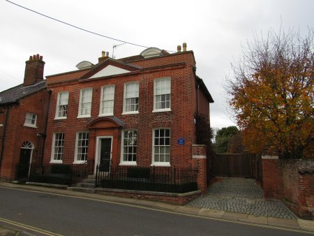 Thomas Wood created a nursery in 1749 on land which had once been part of the garden of Woodbridge Priory. By 1784 the nursery had been expanded by purchasing a large plot of land abutting Cumberland Street. By the entrance to this plot there was a large redbrick building, set back from the road by a large lawn, which became the home of the Woods family. This building can be seen in the recent photograph to the right. In 1840 the nursery was expanded by purchasing the adjoining Cherry Tree Meadows. Most of this land ran alongside Ipswich Road. When the nursery, with its fine, old Georgian house, was put up for auction in 1897 it was bought by Roger Crompton Notcutt of Ipswich. The Notcutt family eventually created a chain of garden centres and nurseries.