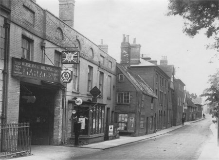 Watsham and Wildings Garage was established in 1900s. They originally occupied two old cottages that were converted into a garage. Following a fire during the Second World War a flat roofed building was erected and the garage operated there until the business closed in 1958. For some time after Deben Garage used it for a hire and it was subsequently used car business. From 1979 the first floor was used as offices by the Woodbridge Timber Company. This timber importing firm moved to the Thoroughfare in 1984.