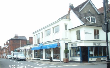 Because the new buildings were narrower than the one it replaced it was possible to widen the pavement in front of the shops. W. Bloxsome Ltd - Gentleman's Tailor's and Outfitters were the first to occupy the corner property until they closed in 1970. It is currently a Prezzo's restaurant.