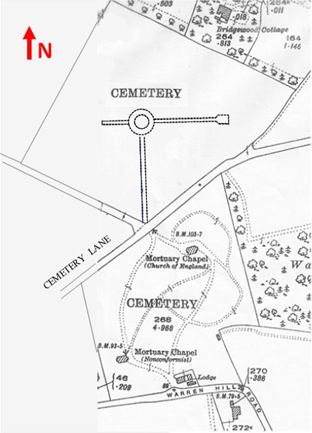 This extract from the 1926 OS maps shows both the northern and southern cemeteries.
