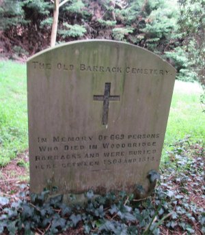 Plot 89 (outlined in red) is a small burial ground in the lower eastern corner of what is now the cemetery abutting Warren Hill Road. This is where the 669 men who died while stationed at the barracks were buried. The tombstone to them can be seen from the road.