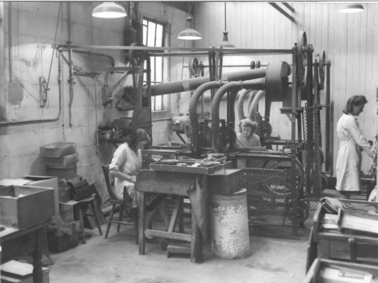 In 1947 Culmark, the shaving brush company, opened a factory in new Turn Lane on part of the site previously occupied by the Carmelite convent. Culmark’s shaving brushes were of the highest quality and would last a lifetime. They were regularly given as a 21st birthday present. Culmark ceased trading in 1975. The site was subsequently used as a printing works until 2003. There are now plans to build housing on the site. This photograph shows the first part of the production line during which the bristles of each brush are set.