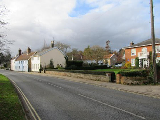 Nos. 64 and 66 the right of Groom House. There a two modern residential properties set back from the road. They replace two buildings which were nearer the road. No 64 was recorded as being a shop in 1925 and as pork butcher in 1937. Beyond it is a timber framed cottage with red brick cladding. The building beyond it is Fern Cottage which in 1925 was the office of William Brinkley, assessor and collector of taxes. By 1937 it was a private residence. |
