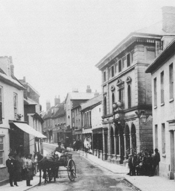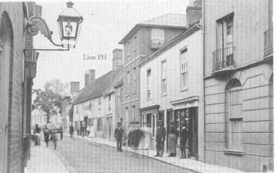 This circa 1900 photograph clearly shows a substantial brick built building which abuts the Lion Public House and the building can also been seen on the photograph below.