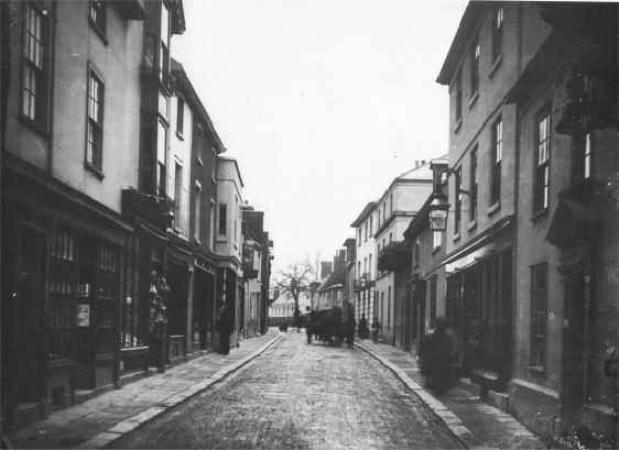 This circa 1900 photograph, and the one below it, indicate that there were were a total of four shops and the Lion Public House before reaching Lime Kiln Quay Road.