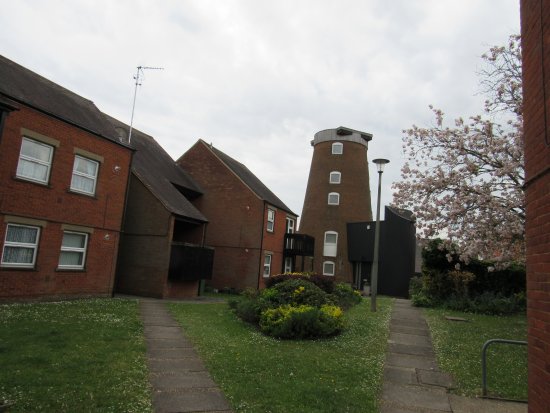 To make way for them, all but one of the pre 1840s buildings on the left side of Theatre Street had to be demolished. By then the sails had been removed from the mill but the tower remained and was eventually included in Mussidan Place.