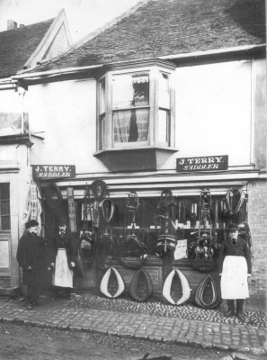 By 1888 the former bake office was occupied by J. Terry who was a Saddler. A photograph of his premises is shown here. |
