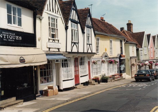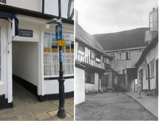 For many years the timber framed building on the left of this photograph was a house and a shop. It also has feature which many passers by ignore. It is a narrow passageway leading to Glovers Yard where where glove makers once worked and lived. |