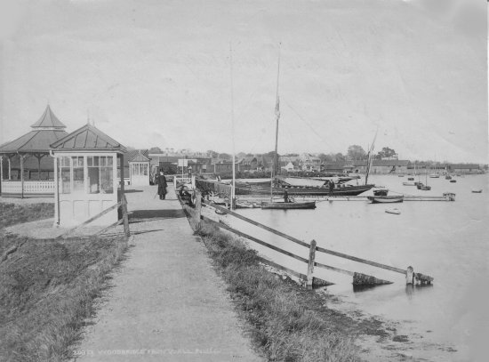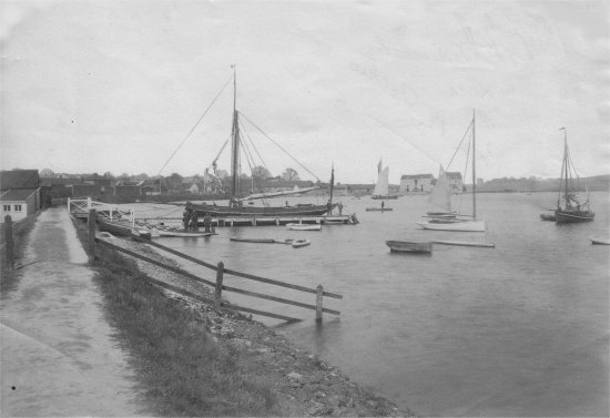 The long jetty in the middle of this photograph is part of Everson's boat yard. In front of it there is a small jetty known as the Town Jetty. It was presented to the town by Arthur Airy, a keen Deben Sailing Club Member, who raced the yacht 'Kisaki'. |