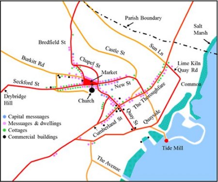 Some of the houses in Woodbridge would not have been listed in the Extent because they were on land belonging to another manor. When allowance is made for this, it is estimated that there were 215 houses in the town in 1560. All of them would have been timber framed.