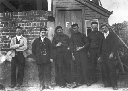 The Woodbridge pilot F Adams is on the left of this photograph which was taken around 1900. The four men on the right are probably 'huffers' who unloaded and loaded vessels.