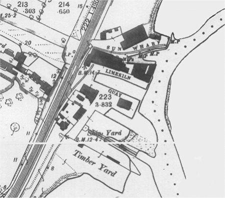 Extract from the 1881 Ordnance Survey map showing the new ship yard on the water front.
