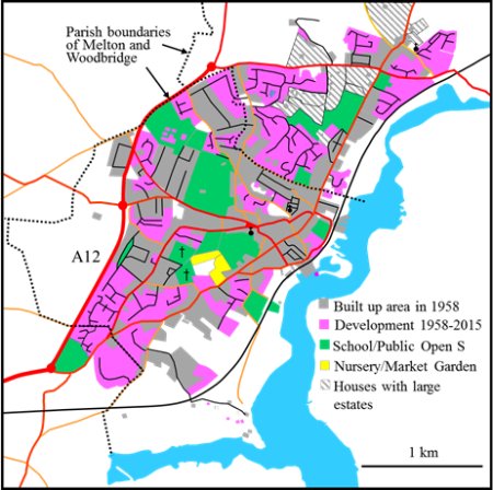 When several large London companies relocated from London to the Ipswich area in the early 1970's many of their employees decided that Woodbridge and Melton were the perfect place to live and the populations of both communities increased significantly. The location of the new houses needed to accommodate the new arrivals was set out a Town Plan which was finalized in 1967.