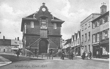 When Woodbridge Priory was dissolved in 1535 and the right to hold a market passed to the lord of the manor of Woodbridge late Priory. In 1574 the then lord, Thomas Seckford, improved the market by building the Shire Hall in the centre of the town. The lower part, which then had open arches rather than windows, was used as a covered market. Other market stalls and animal pens continued to be laid out around the rest of the Market Hill. The upper floor of the Shire Hall was used for Quarter Sessions of the County Court. |