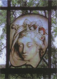 St Etheldreda depicted in a window at Ely Cathedral