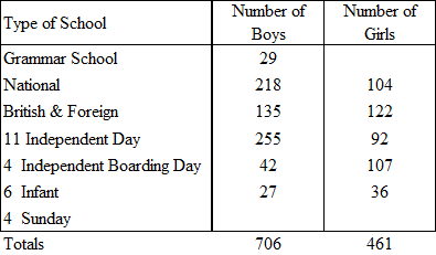 Sometime around the end of the eighteenth century a number of Independent Schools started to appear in the town. These schools charged parents the full cost of tuition and accepted boarders. It has been suggested that they provided a commercial education, an attractive alternative, in changing times, to the classical education provided by the Grammar School. This table show the number of schools of all types in Woodbridge by 1833 and the number of pupils in each type. |