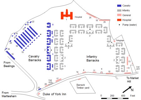 The barracks included a large hospital and there was an Inn, The Duke of York, just outside the main gate to provide entertainment and relaxation for the troops.
