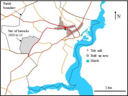 During the Napoleonic War (1796 to 1815) there was a barracks, for over 4000 troops, on the outskirts of the town.