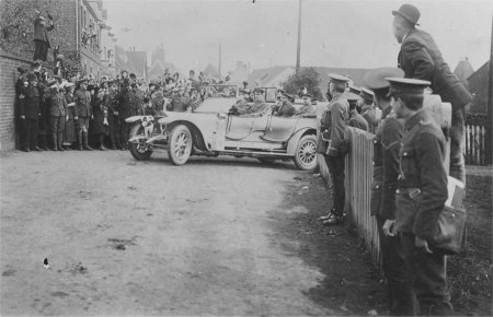 King George V leaving Woodbridge Station on 10th November 1914 on route to visit the troops training in the area. |
