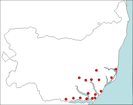 ![]() The red dots on this map of Suffolk mark the locations of the Platoons of the 4th Volunteer Battalion, Suffolk Regiment.