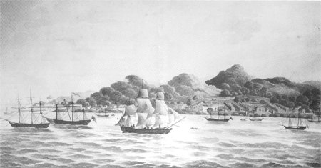 Drawing showing the fleet led by John Clarkson arriving at Sierra Leone in 1792.