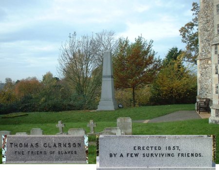Thomas was buried at St Mary's Church, Playford, in a simple family grave. The inscription does not mention his achievements but ten years later some of his surviving friends erected a fifteen-foot obelisk of Aberdeen granite nearby. It bears the simple inscription - Thomas Clarkson the Friend of Slaves.
