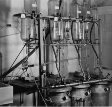 The apparatus which Heatley constructed in 1941 to extract penicillin from the mould juice. It is now on display at the Science Museum