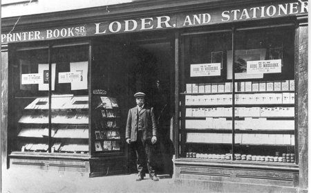 Robert Loder is recorded as a bookseller and stationer in Bailey's 1784 Directory. By 1823 another directory states that he is a bookseller, stationer and printer. By 1830 John Loder had taken over the shop on the Thoroughfare by then it was also dealing in patent medicine, music and musical instruments. In 1871 John Loder is listed as bookseller, printer, bookbinder, commercial and fancy stationer, news agent and music seller. The years later another directory recorded that John Loder was also an agent for two insurance companies. Clearly it was necessary to diversify the business in order to make a living.