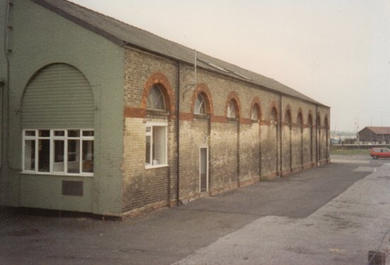 This photograph shows the grain store just before its conversion to a number of commercial units. Carts delivered corn one of the large entrances and it was stored under cover before it could be loaded on to railway wagons and taken back to the main goods line. |