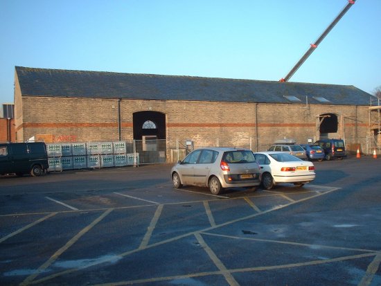 There used to be a railway line running along the left hand side of this former grain store. Individual waggons were hauled up the railway line by a pair of horses up to a turntable which enabled the waggon to be pulled through the gain store to be loaded undercover. Once loaded the waggon would be pulled back onto the main goods line. |