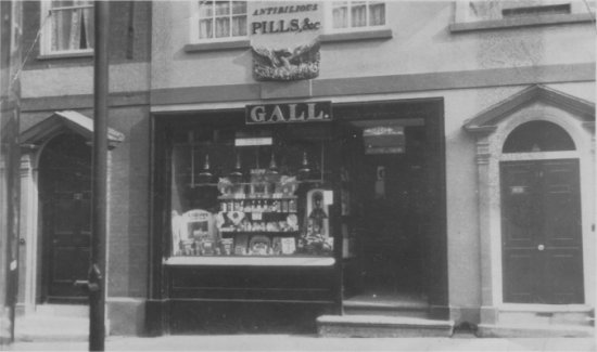 Gall and Allen were a chemist, druggist and soda water manufacturer. By 1874 Benjamin David Gall was the sole proprietor. He was a pharmaceutical chemist & druggist, aerated water manufacturer, oil & colour-man, and insurance agent. |