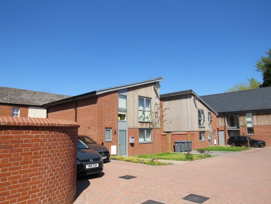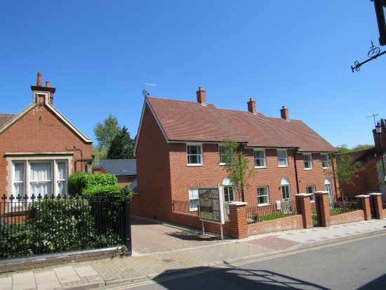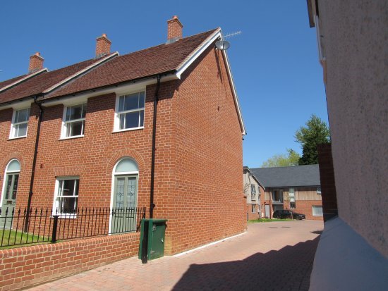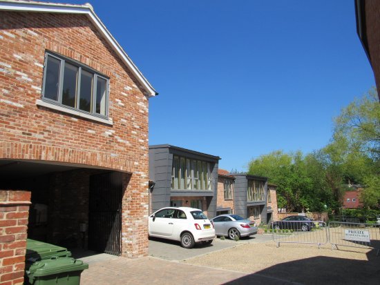 On the right hand side of terrace of three houses set back from New New Street there is an other lane leading a new development of three houses. |