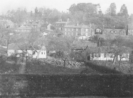 This photograph shows the valley between Chapel Street and Castle Street. The Naverne Brook flows along the bottom of the valley and this is where the fleeces from the sheep were washed and dried. The earliest maps of the area shown sheds near the brook and presumably they were associated with the production of wool. |