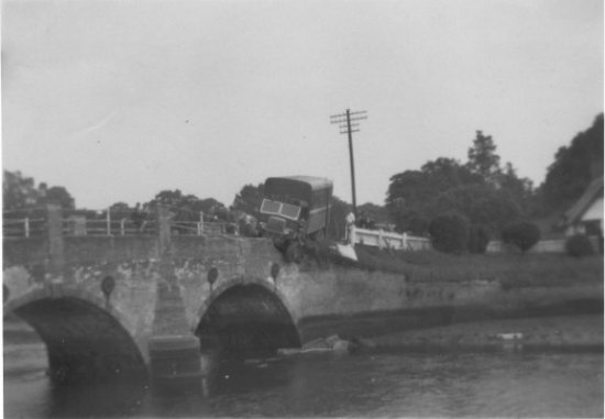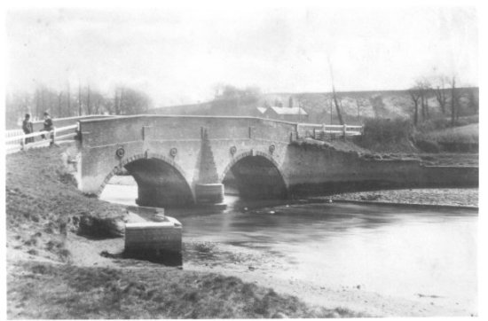 In 1939 the old bridge was declared unsafe and the road was closed whilst a new one was built at a different angle. Foundations of the old bridge were washed away in the flood of that year. In 1950 the road approaching the bridge was straightened. |