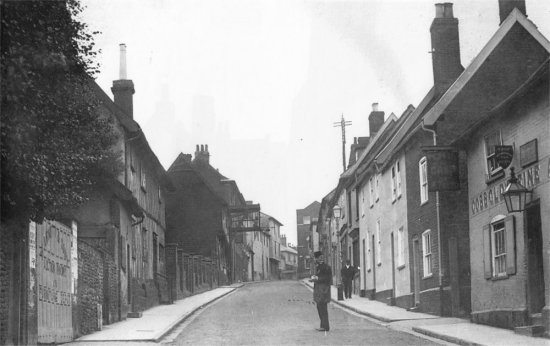 This photograph of the top part of New Street was taken in about 1900. Little has changed since then. |